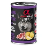 93% jagnięcina (mięso, wątroba, płuca), 4% gruszka, żelatyna, wysłodki buraczane, przyprawy i minerały