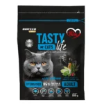 Tasty Cats Life to linia pełnoporcjowych karm, która łączy jakość z smakowitością, zaspokajając potrzeby nawet najbardziej wymagających kotów. Karma została wzbogacona o witaminy A, D3, E oraz taurynę, niezbędną do prawidłowego funkcjonowania serca i wzroku kota. Zawarte w karmie dodatki: suszone jabłka, żurawina i olej z łososia wspierają zdrowie układu trawiennego, moczowego i skóry. Dzięki precyzyjnie zbilansowanej recepturze, Tasty Cats Life dostarcza wszystkie niezbędne składniki odżywcze, wspierając witalność Twojego pupila.