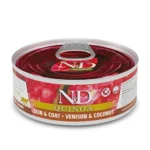 gicz jelenia (65%), nasiona komosy ryżowej ekstrahowane (5%), olej z ryb, kokos (4%), fruktooligosacharydy, siarczan chondroityny, glukozamina, witaminy, minerały. Źródła białka: gicz jelenia. Źródła węglowodanów: nasiona komosy ryżowej ekstrahowane.