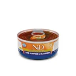 gicz jagnięca (50%), wątroba jagnięca, dynia (5%), borówki (4%), olej z ryb, tłuszcz zwierzęcy, fruktooligosacharydy, siarczan chondroityny, glukozamina, witaminy, minerały.